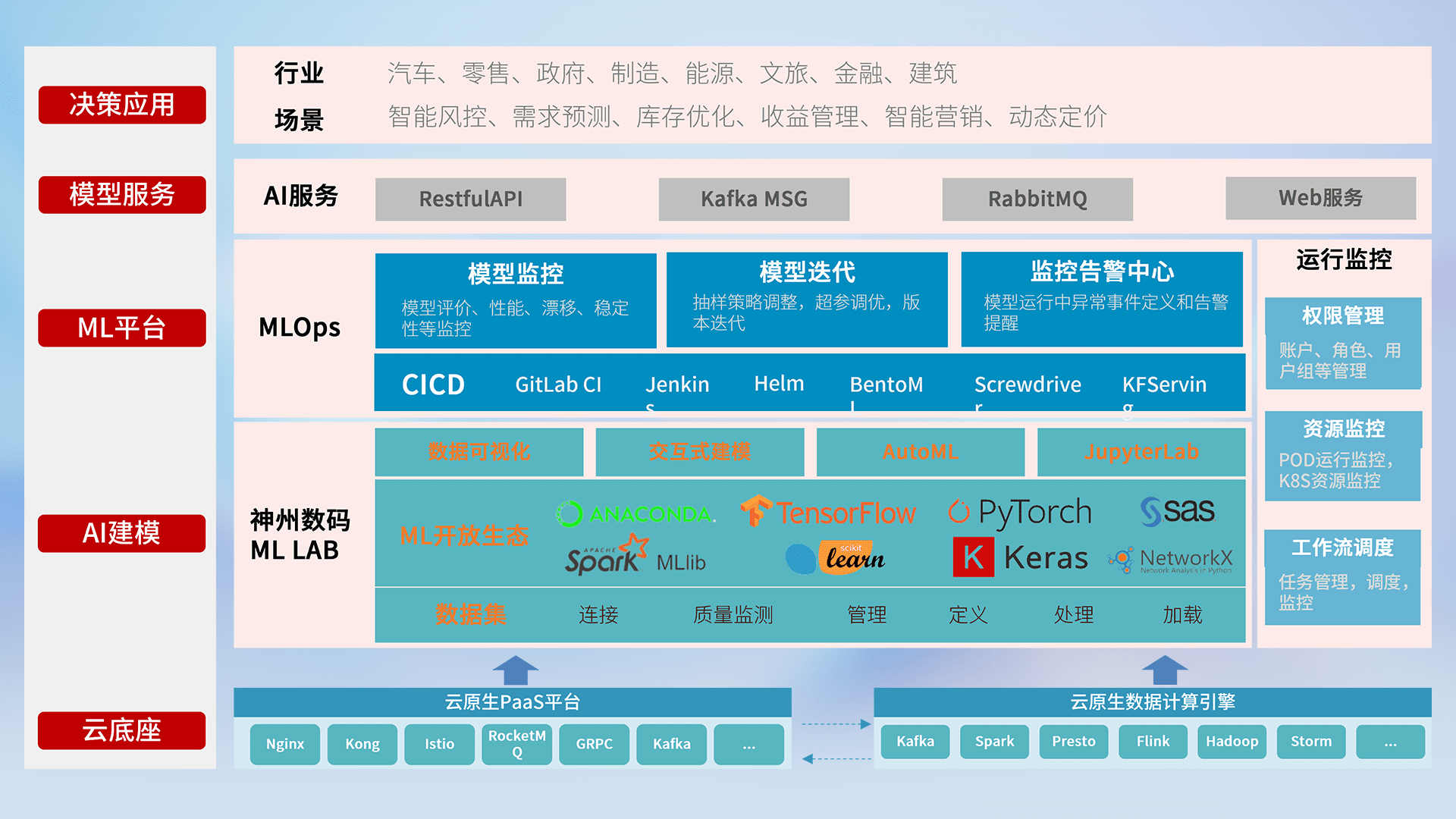 数据+模型双引擎驱动,,,面向智能服务场景,,,,快速灵活利用AI技术,,,,支持业务决策,,,,助力企业智能化转型破局。。。。